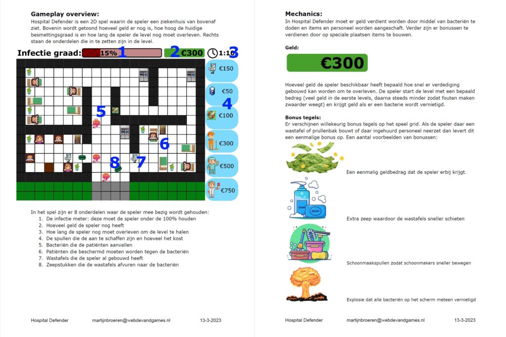 In de Ten Pager staat alles wat er bij het te ontwikkelen spel komt kijken: hoe het eruit komt te zien, hoe het te bedienen is, welke gameplay de speler kan verwachten, welke sound effects er te horen zijn, etc. Als we de ten pager hebben opgesteld kan het eerste prototype van het spel worden gebouwd.